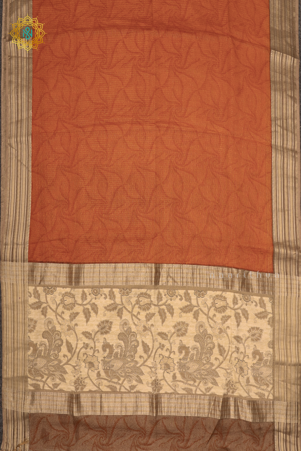 RUST ORANGE WITH BEIGE - SEMI CREPE SILK