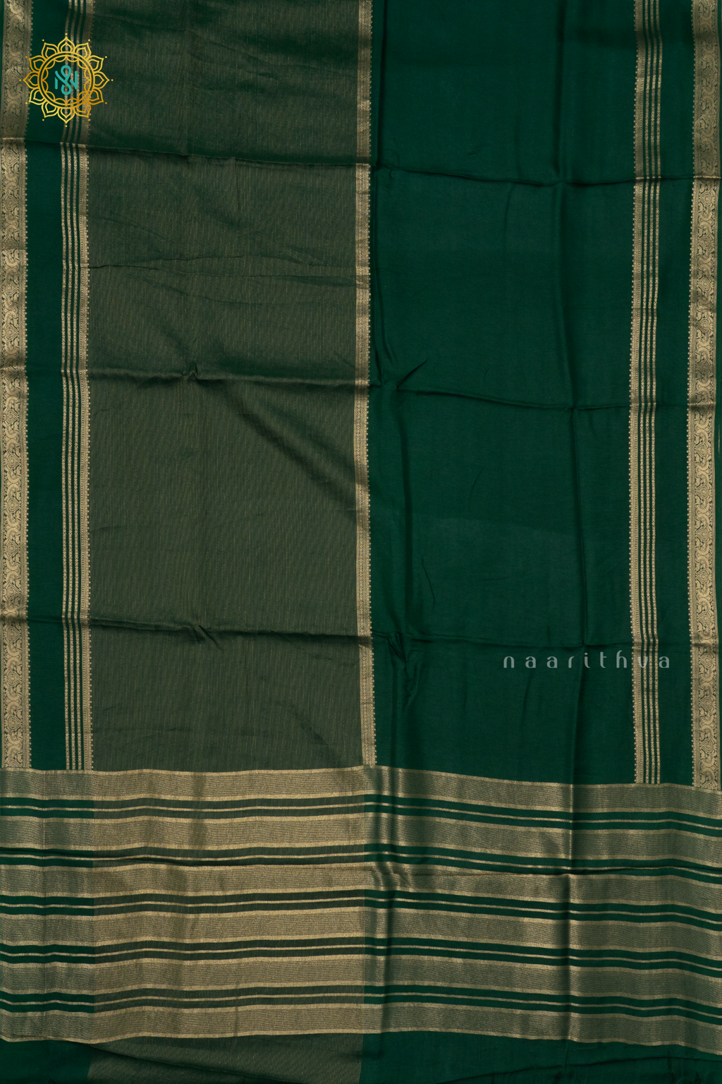• Design : Zari Stripes Body With Bentex Zari Border, Pallu & Contrast Blouse In Half & Half Pattern