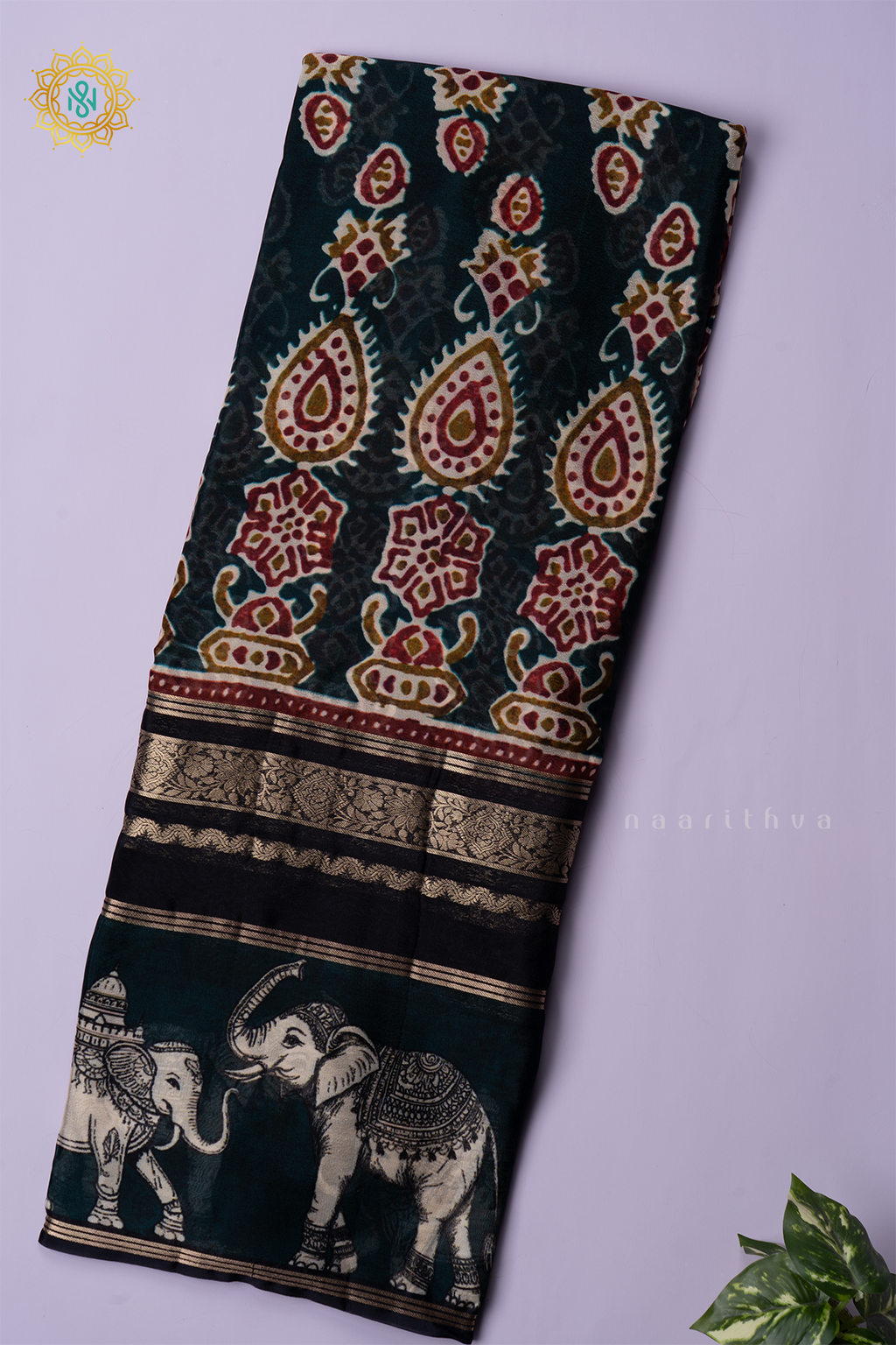 BOTTLE GREEN WITH BLACK - SEMI ORGANZA CREPE