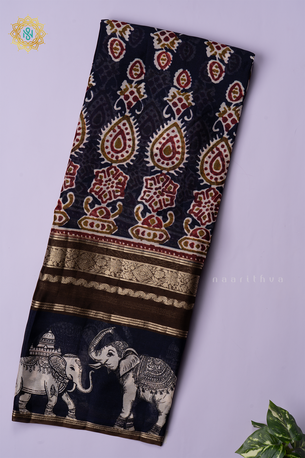 NAVY BLUE WITH BROWN - SEMI ORGANZA CREPE