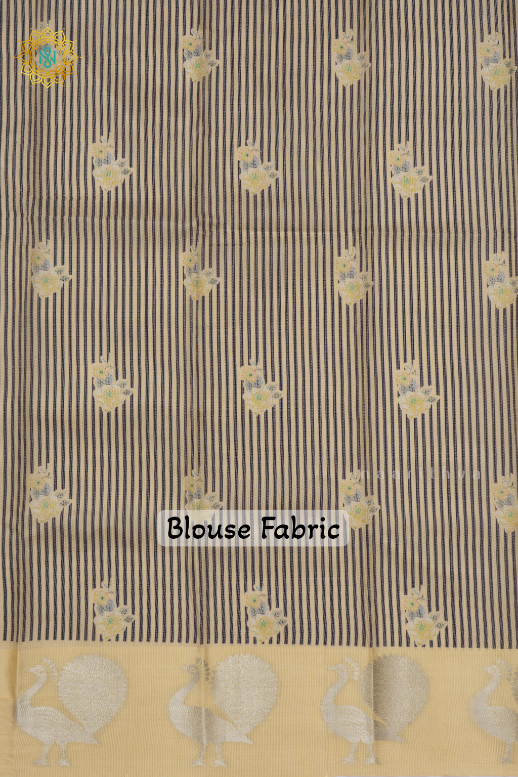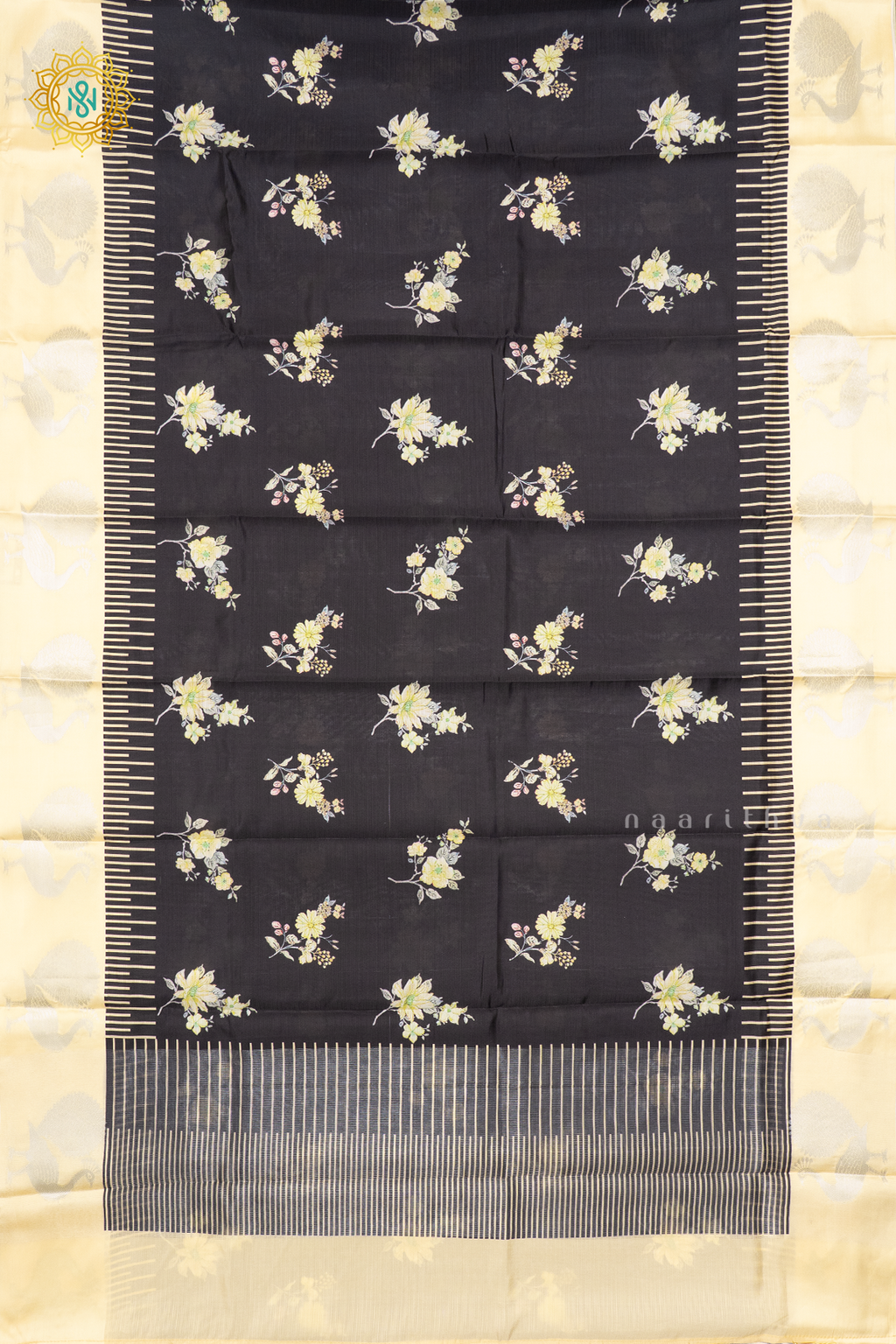 BLACK WITH LIGHT YELLOW - SEMI CREPE SILK