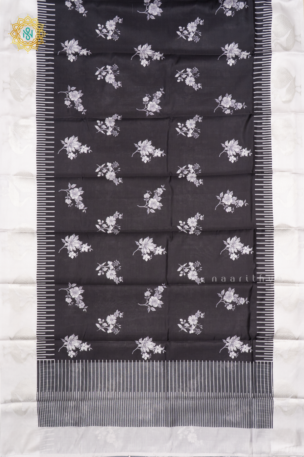 BLACK WITH GREY - SEMI CREPE SILK