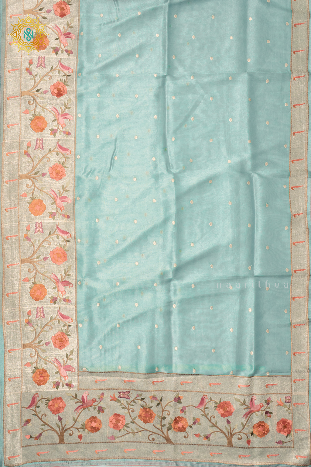 • Design : Zai Buttas & Tissue Body With Embroidery Zari Border, Pallu & Blouse