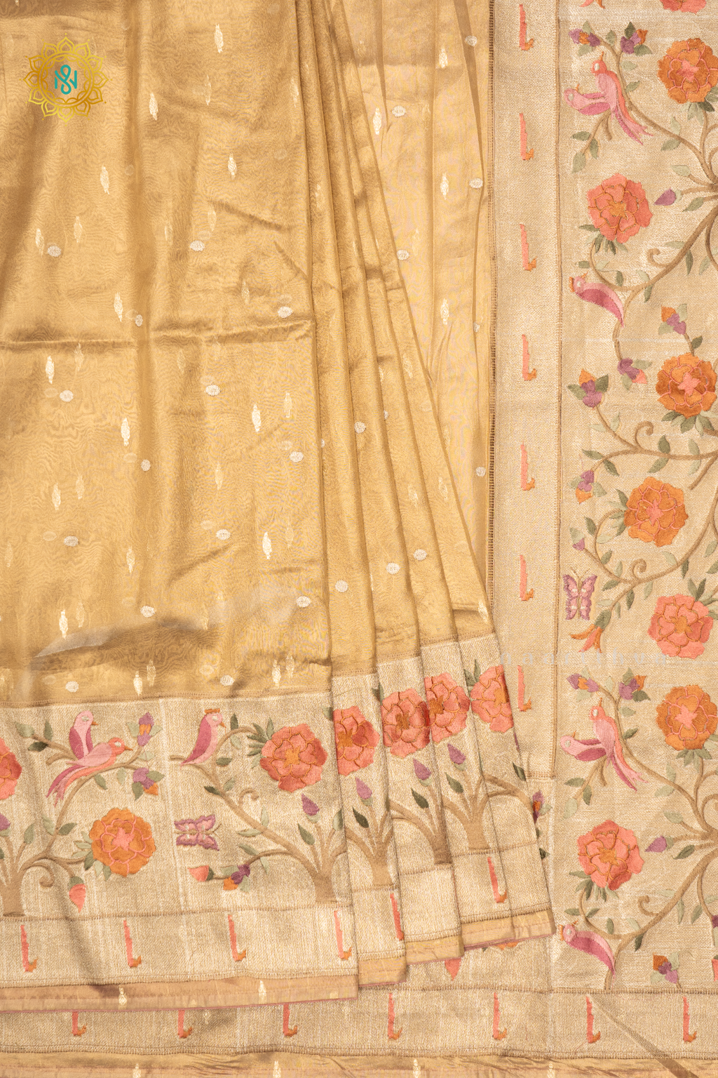 • Design : Zai Buttas & Tissue Body With Embroidery Zari Border, Pallu & Blouse
