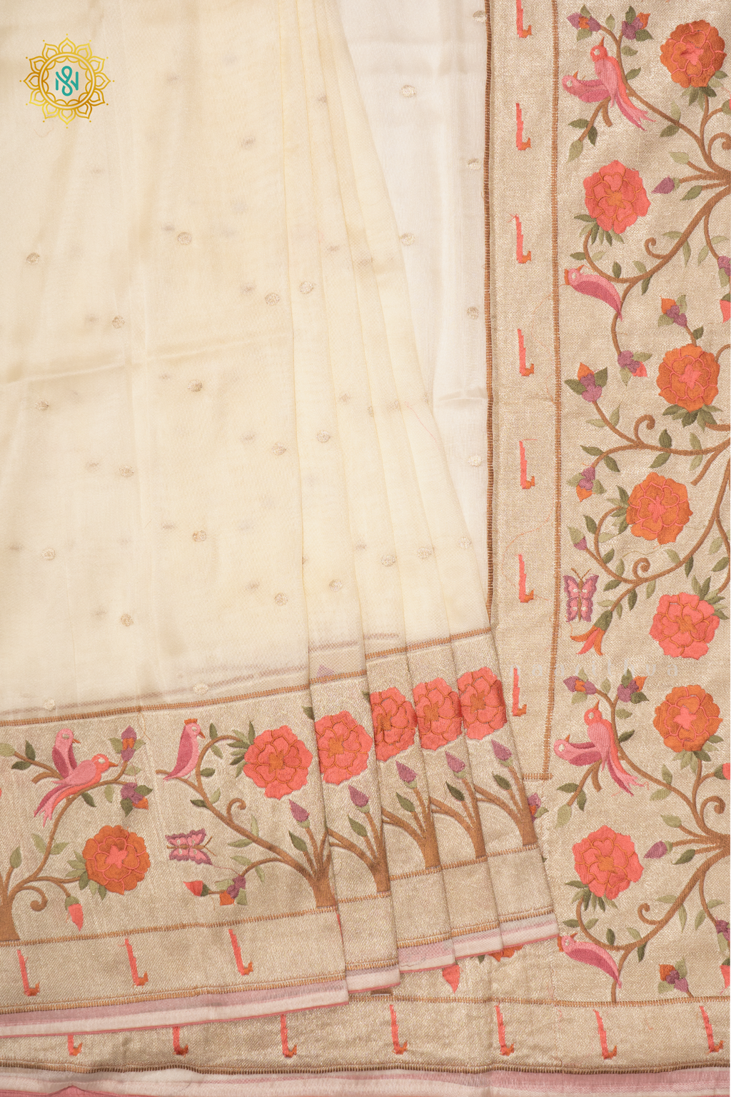 • Design : Zai Buttas & Tissue Body With Embroidery Zari Border, Pallu & Blouse