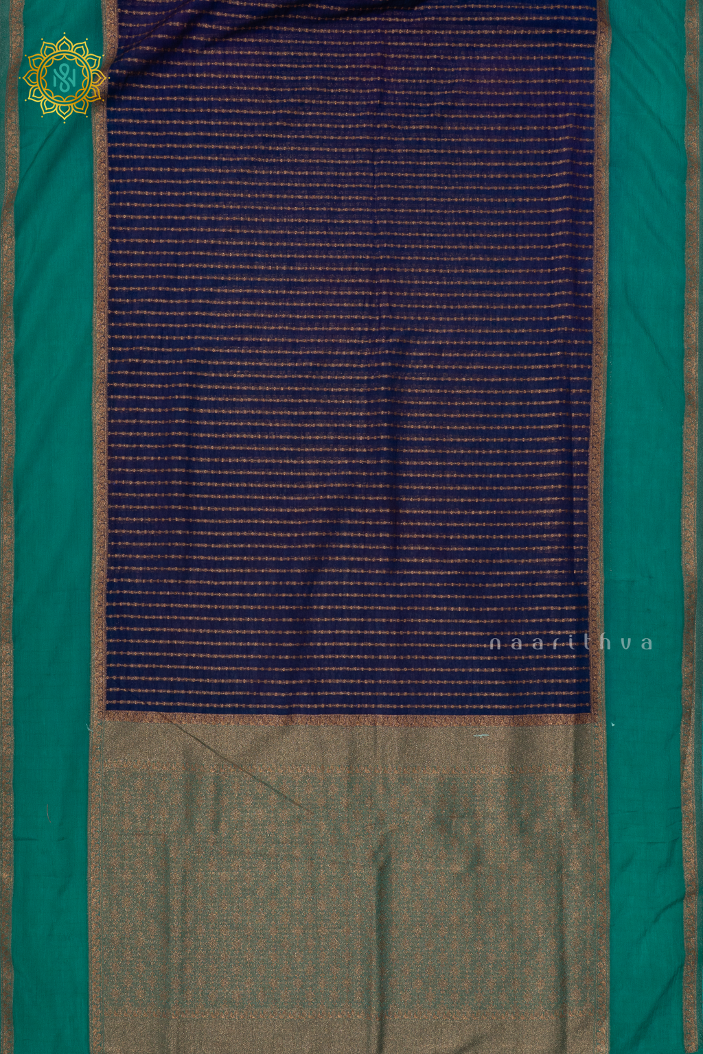 NAVY BLUE WITH AQUA GREEN - SEMI CREPE GEORGETTE
