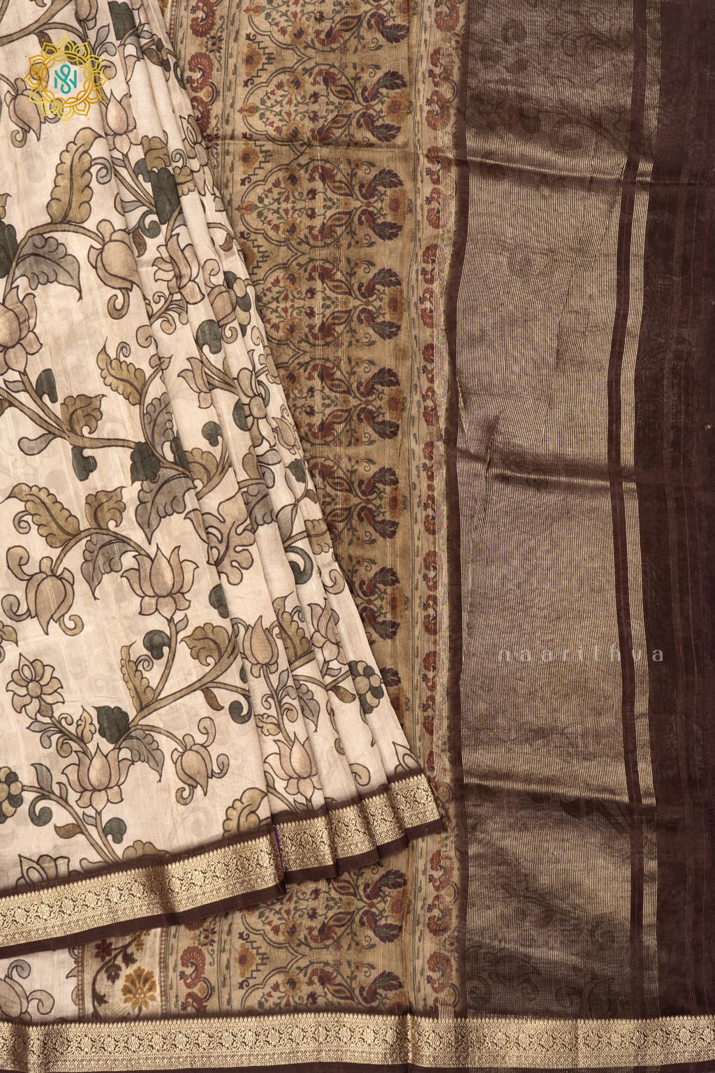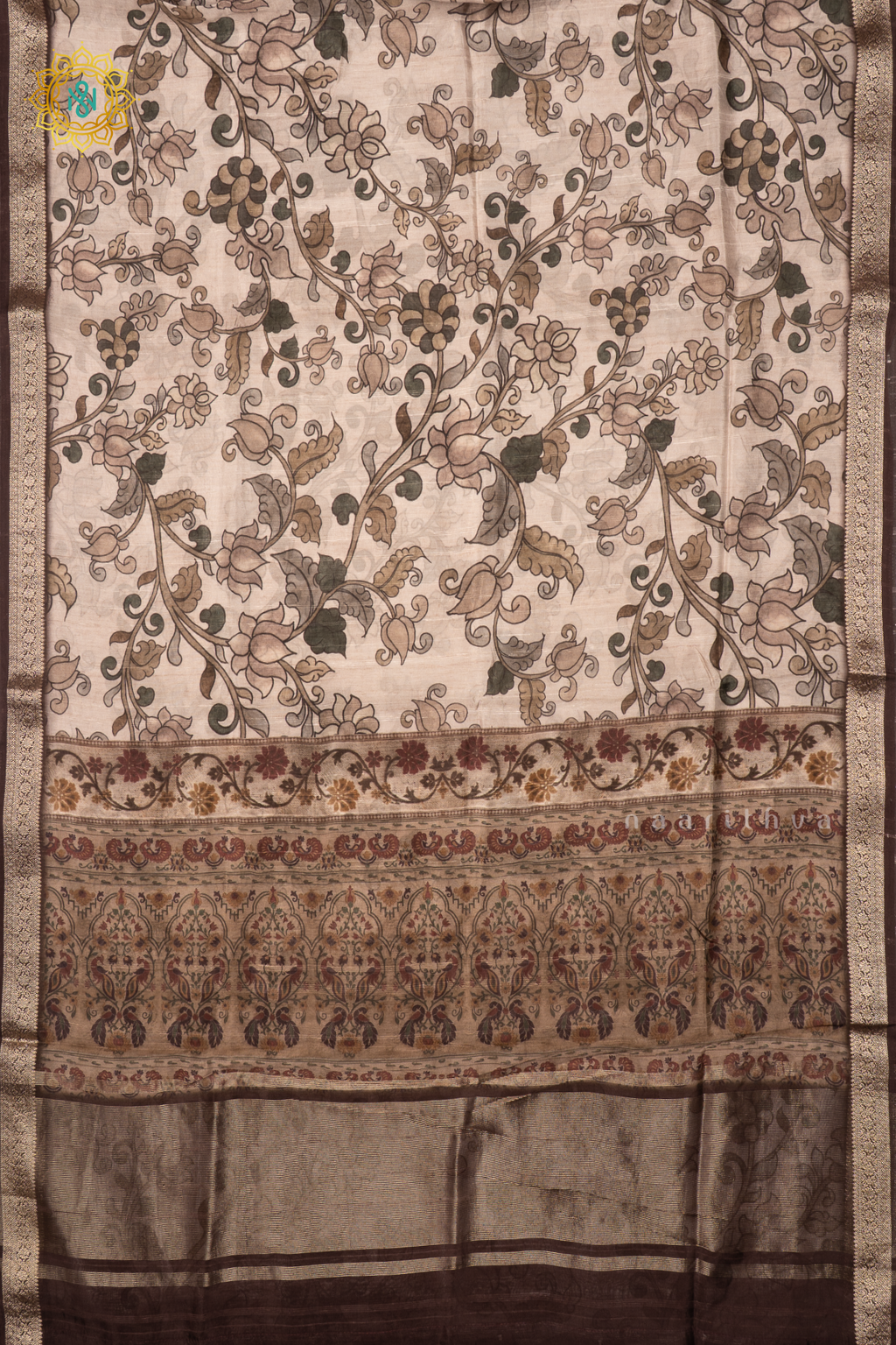 OFF WHITE WITH BROWN - SEMI CREPE SILK