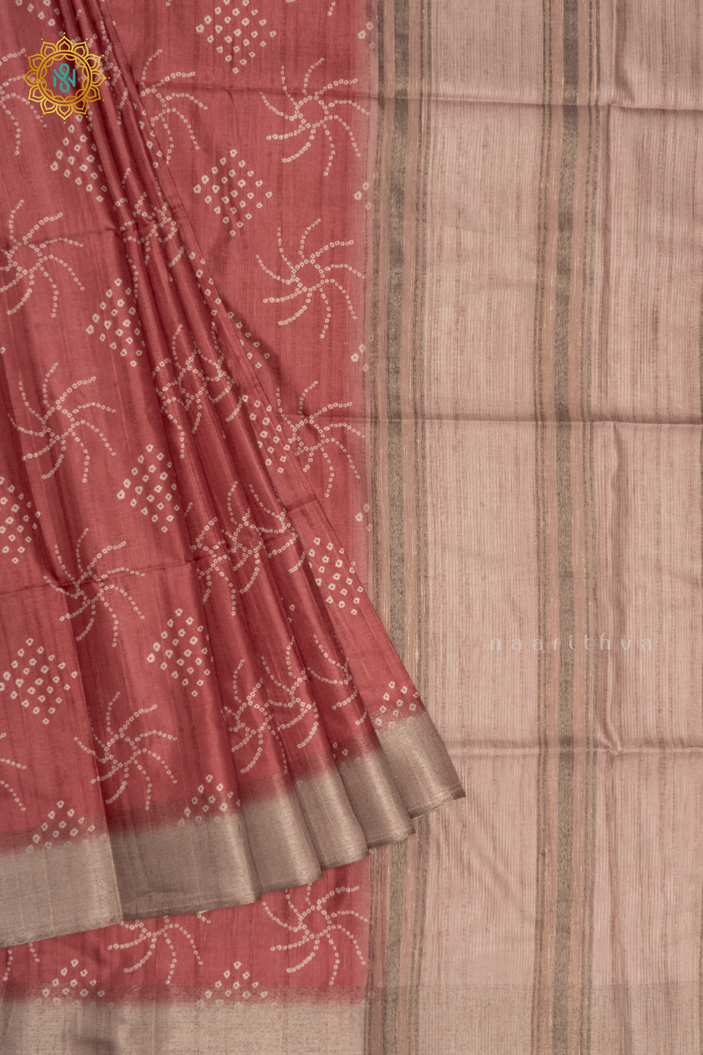 MAROON WITH BEIGE - SEMI TUSSAR SILK