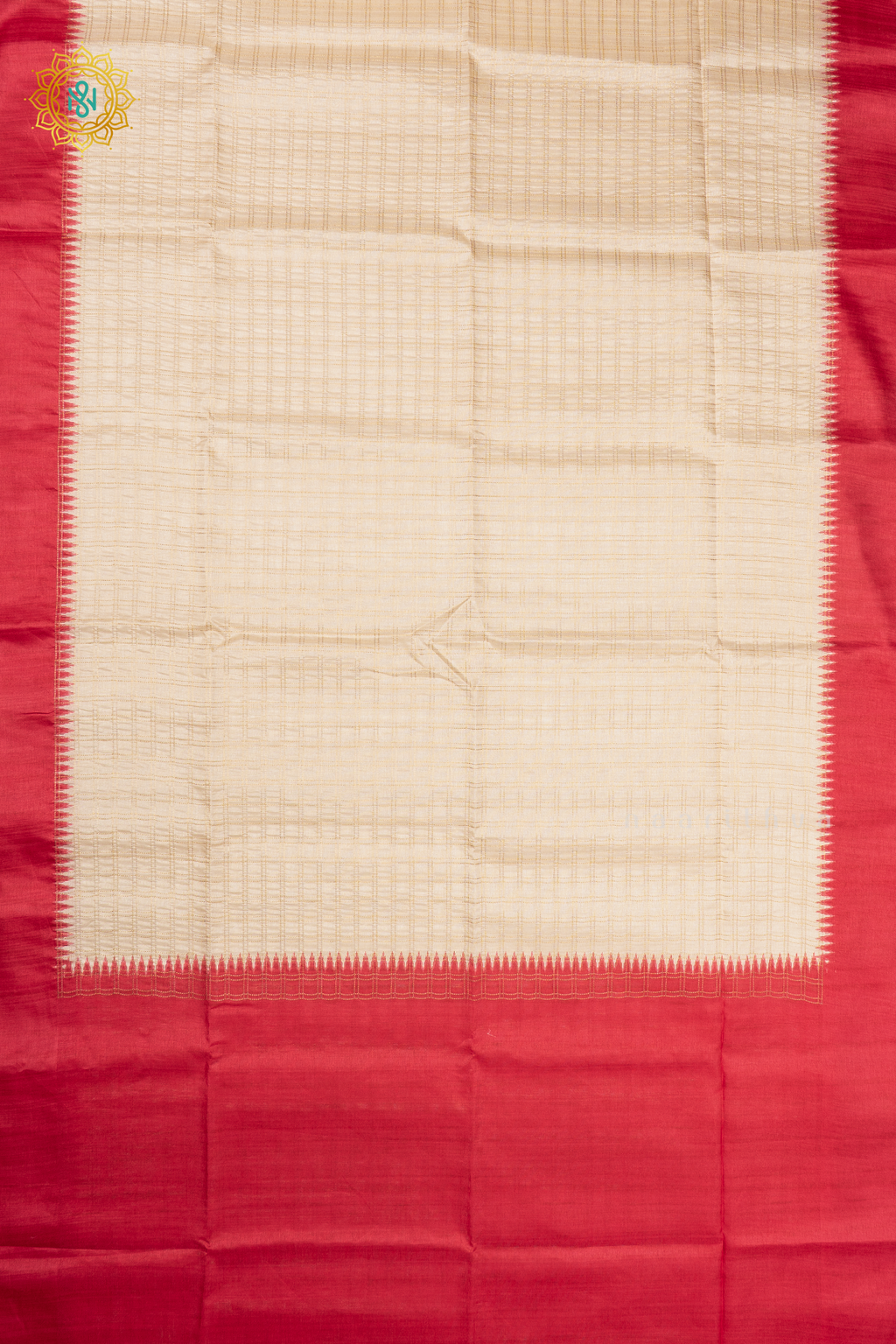 OFF WHITE WITH RED- SEMI TUSSAR SILK