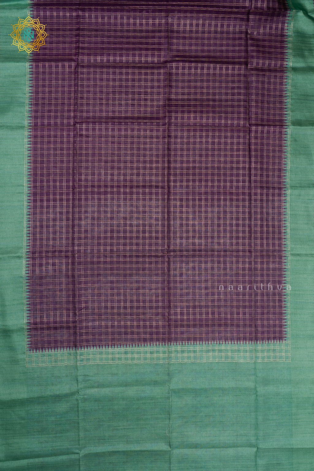 PURPLE WITH AQUA GREEN - SEMI TUSSAR SILK