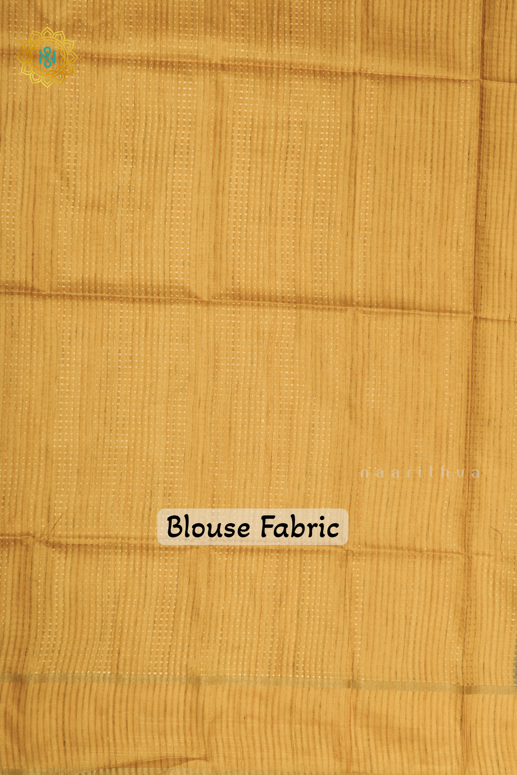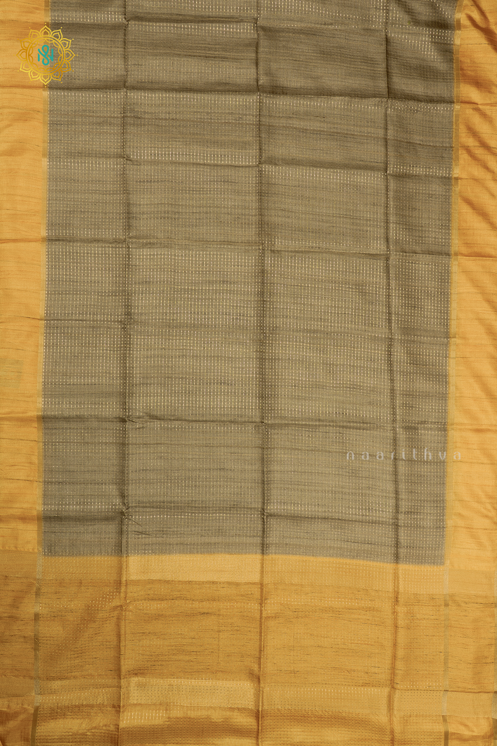 OLIVE GREEN WITH YELLOW - SEMI TUSSAR SILK