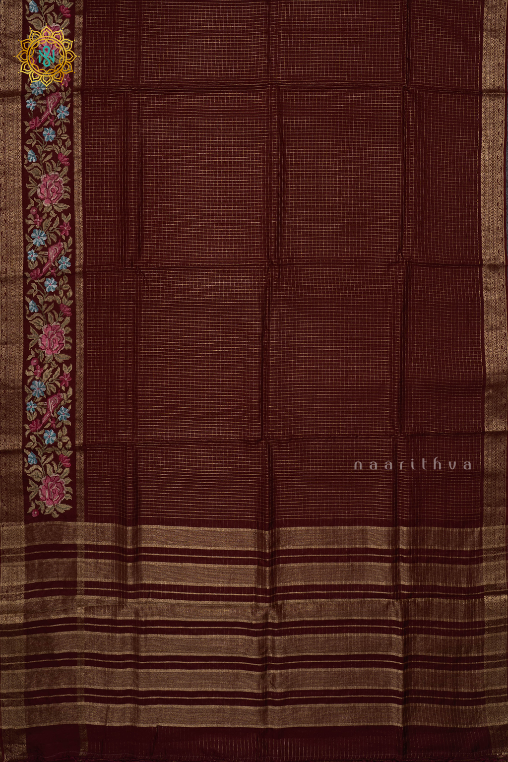 • Design : Checks Body With Embroidery Zar Border, Pallu & Blouse