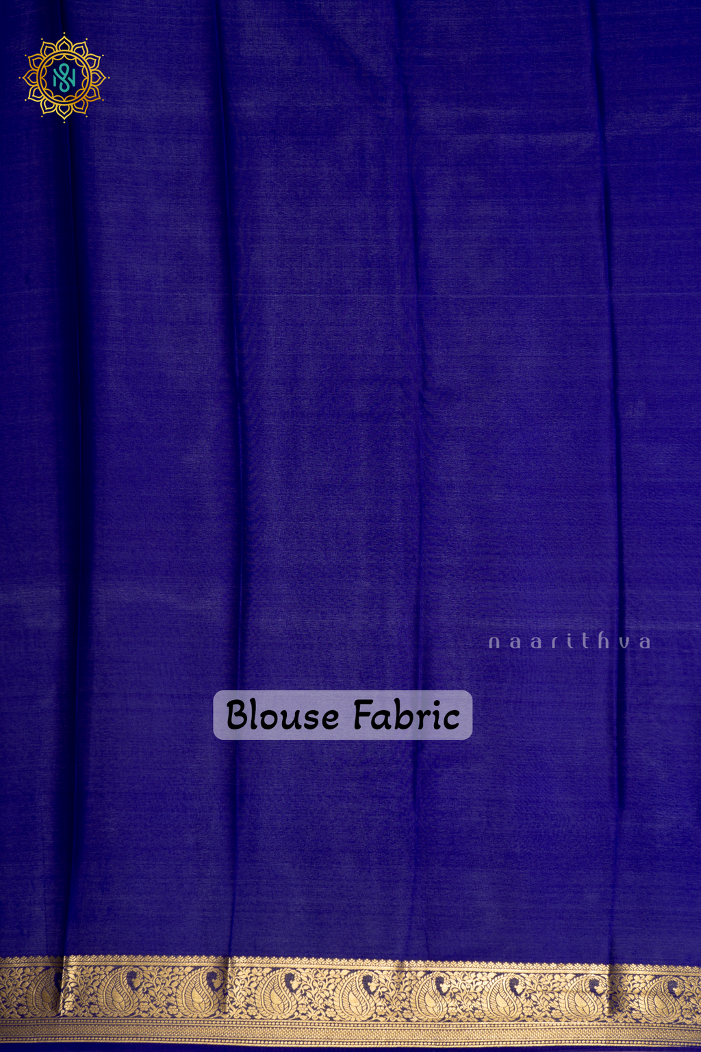 AQUA BLUE WITH ROYAL BLUE - PURE MYSORE CREPE SILK
