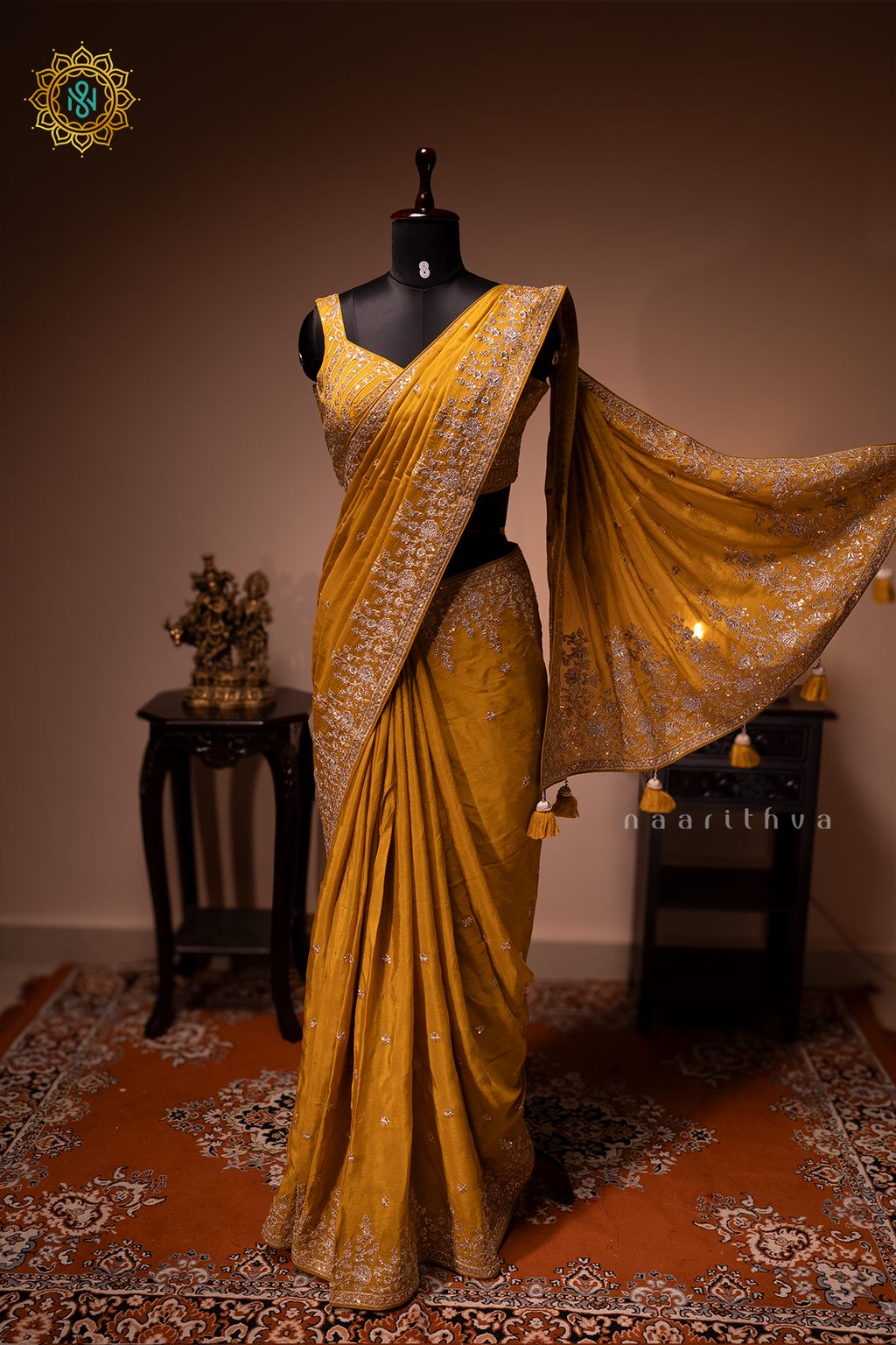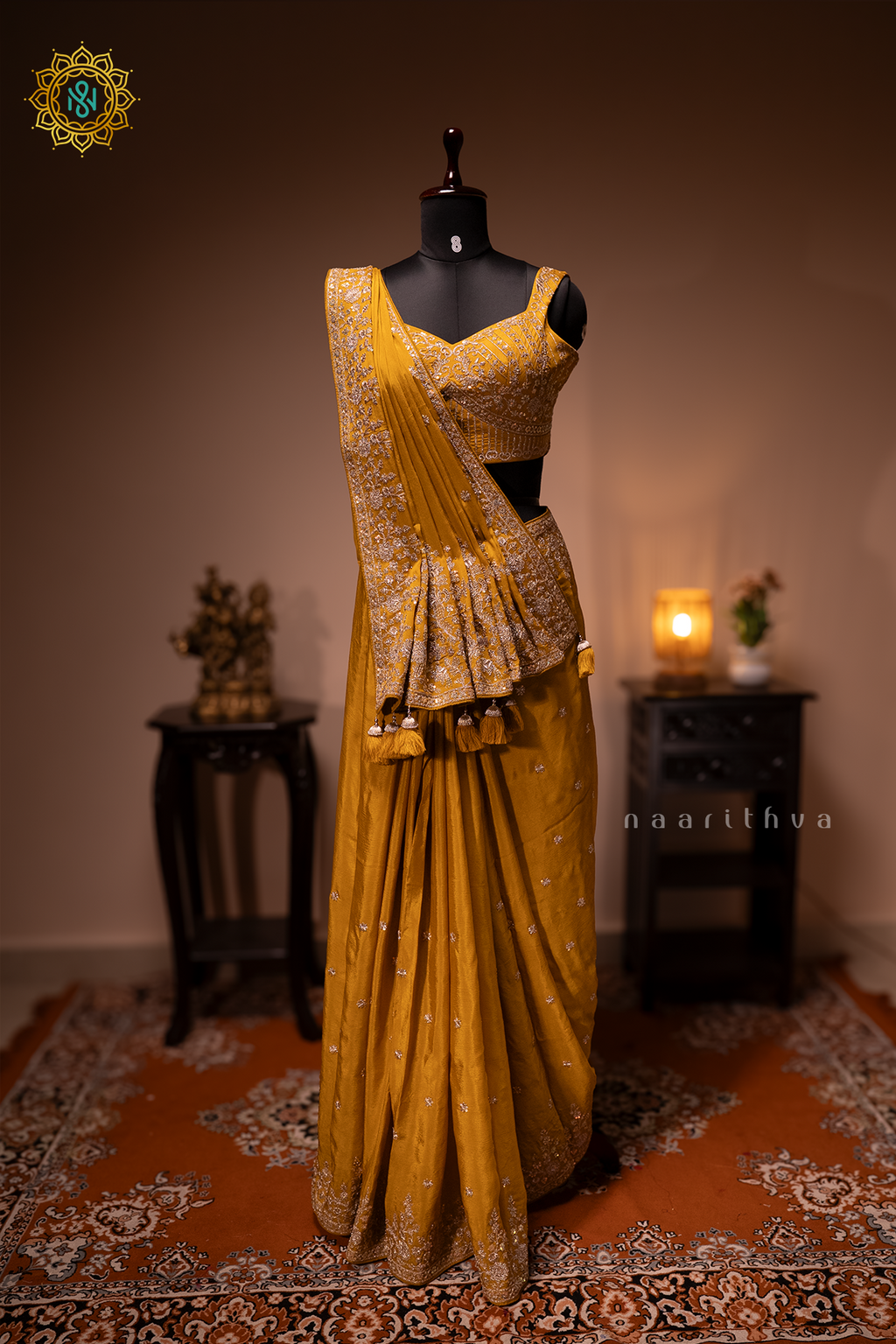 MUSTARD - CHINNON DESIGNER WEAR WITH READYMADE BLOUSE
