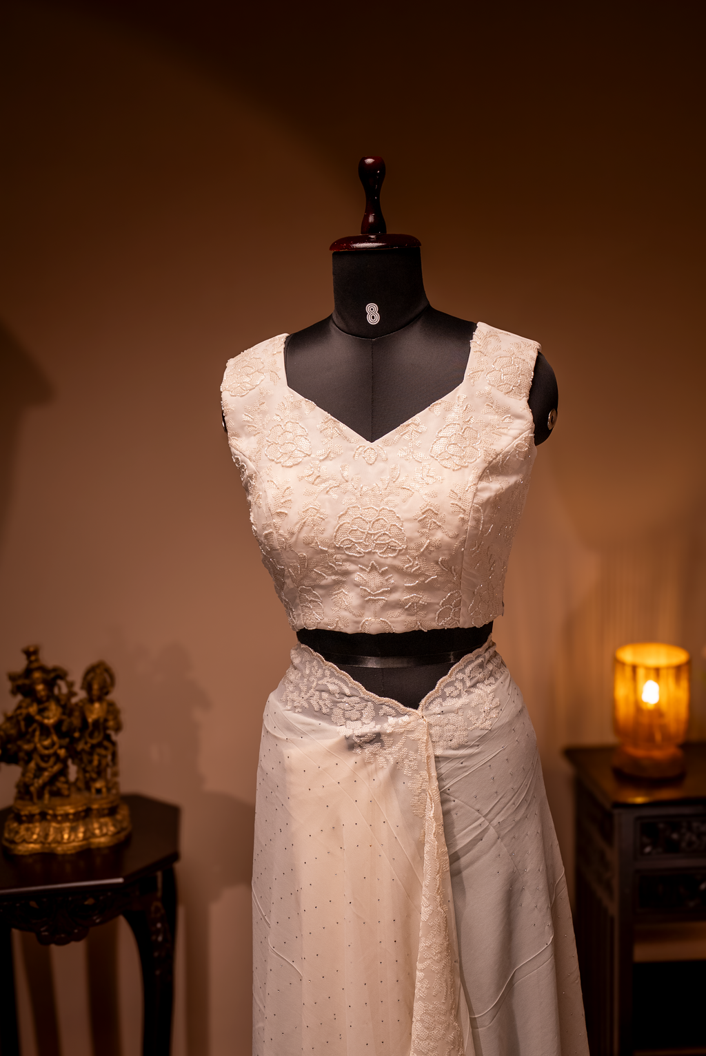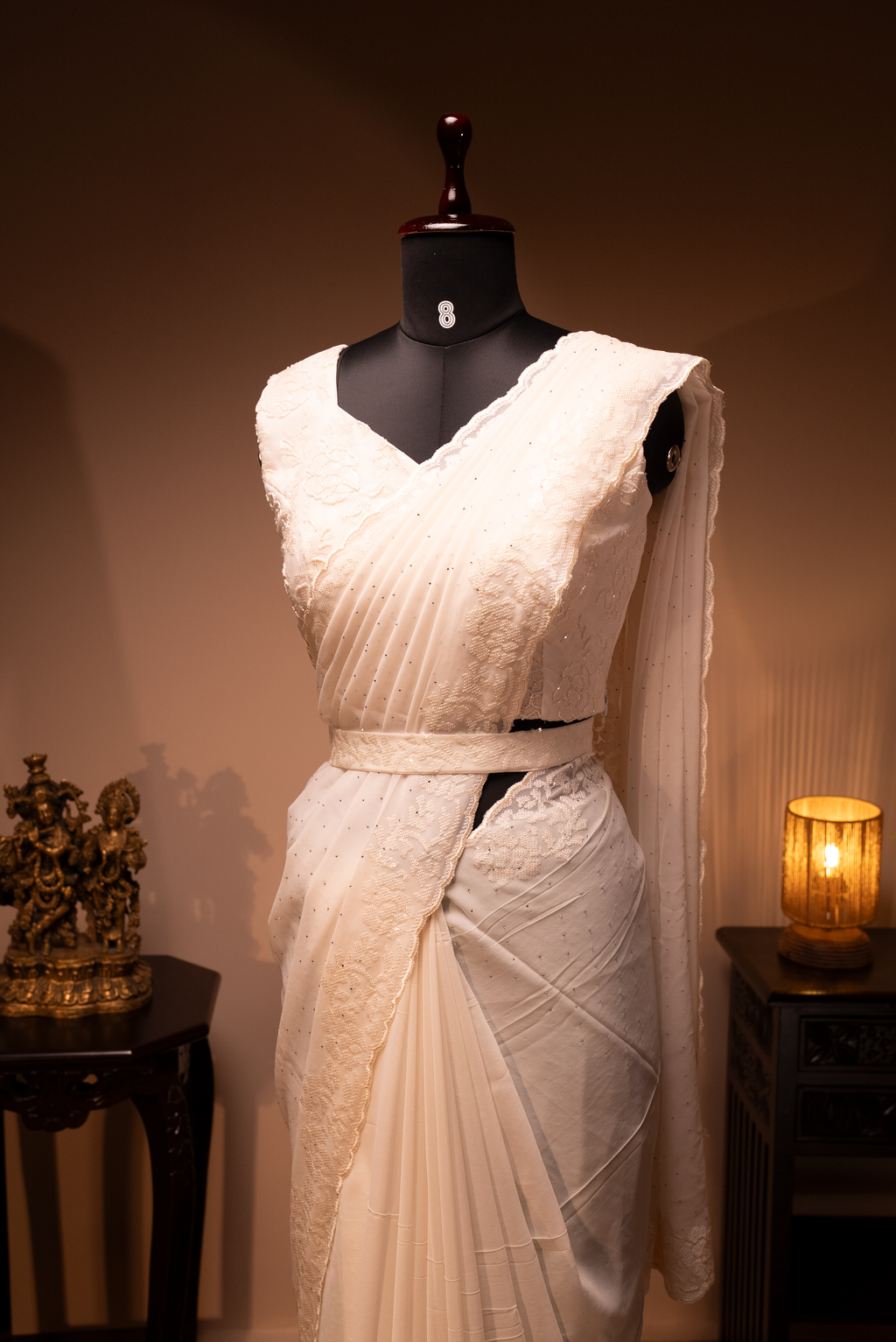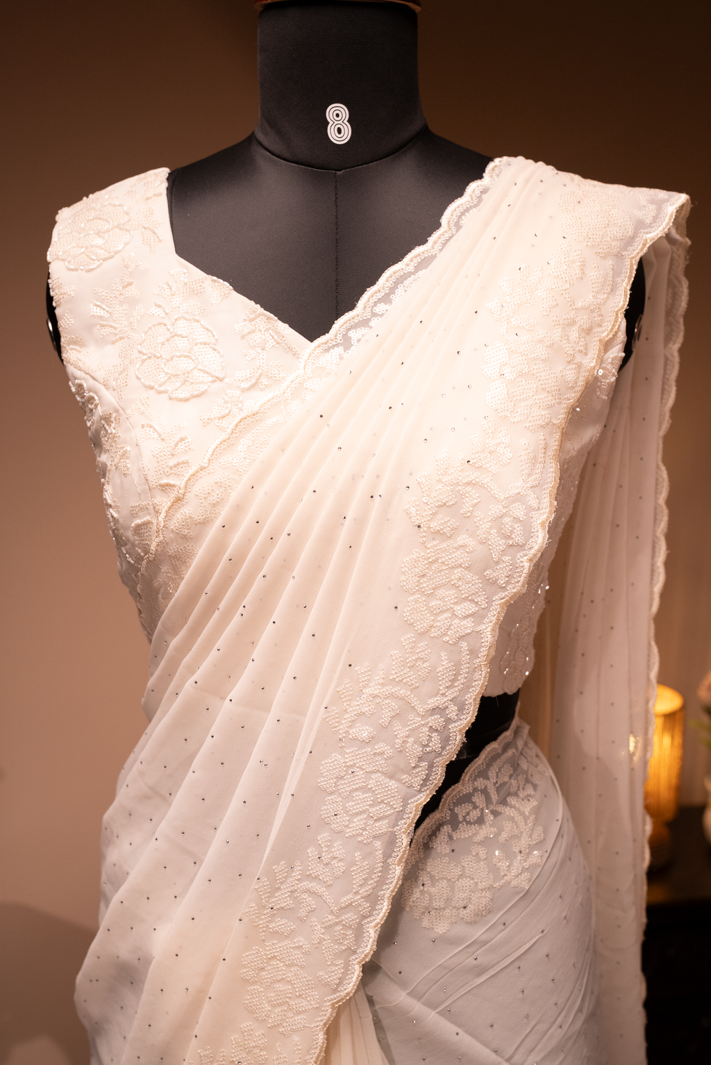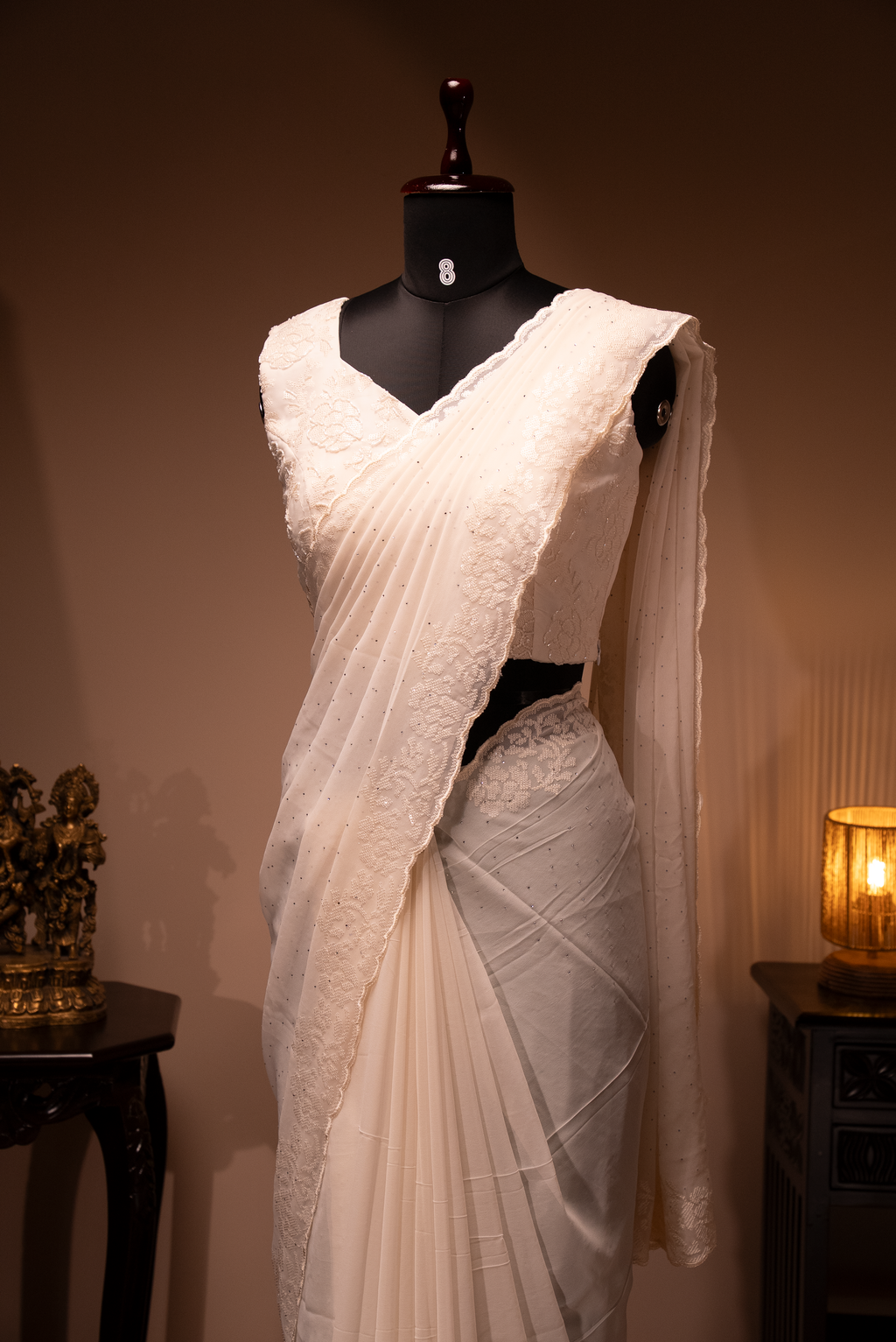 WHITE- DESIGNER GEORGETTE SAREE WITH READYMADE BLOUSE