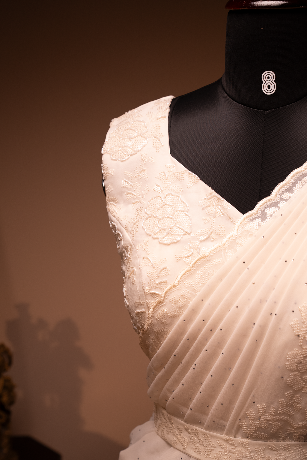 • Design : Sequins Work On The Body With Scallop Border, Pallu & Readymade Blouse