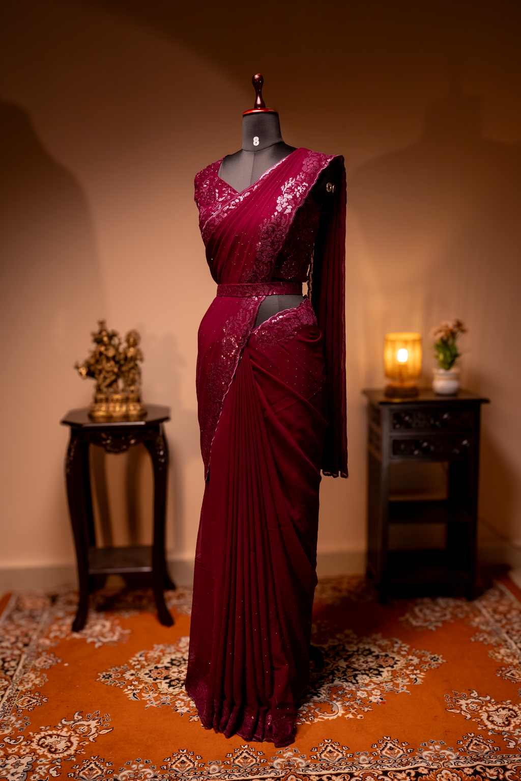 WINE - DESIGNER GEORGETTE SAREE WITH READYMADE BLOUSE